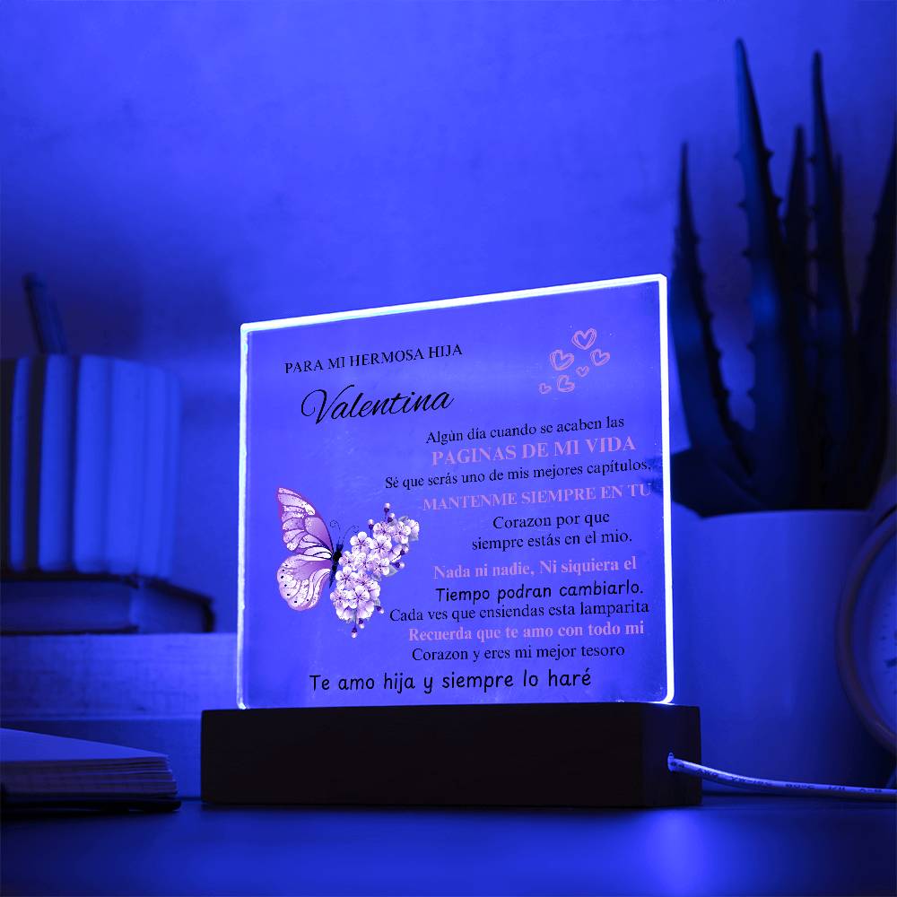 Tu placa estará hecha de acrílico de primera calidad con un diseño impreso profesionalmente para una apariencia elegante. Viene con una elegante base LED de madera y puedes elegir entre una opción de conexión USB O una opción de funcionamiento inalámbrico con pilas (requiere 2 pilas AAA, no incluidas). Ambas bases LED cuentan con 7 colores vibrantes, lo que permite al usuario personalizar la iluminación con varios cambios de color y ciclos dinámicos.