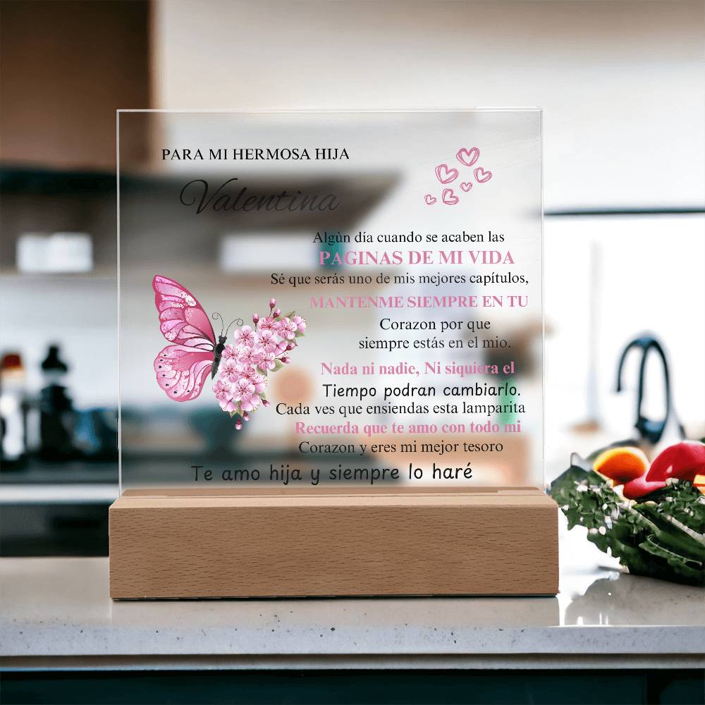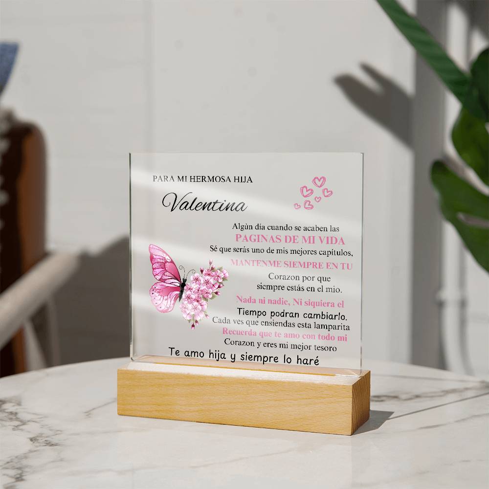 Cree un recuerdo memorable en cualquier habitación con nuestra Placa Acrílica Cuadrada Impresa. Este hermoso letrero está hecho a mano utilizando acrílico de primera calidad y un diseño impreso vibrante. Exhiba ésta hermosa placa en su hogar o regálela para hacer una declaración de afecto. Nuestra placa acrílica es un regalo ideal para su pareja, familiares o amigos en ocasiones especiales como aniversarios, cumpleaños o cualquier evento en el que quiera expresar su amor y aprecio de una manera inolvidable.